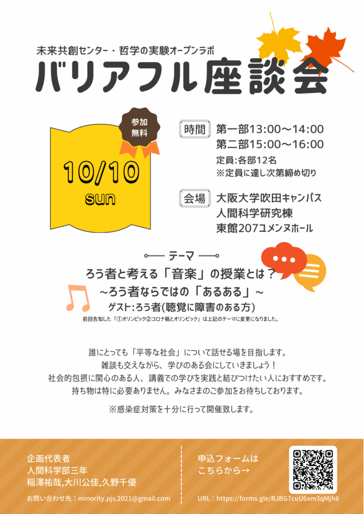10/10(日)に学生有志企画『バリアフル座談会』を実施しました!