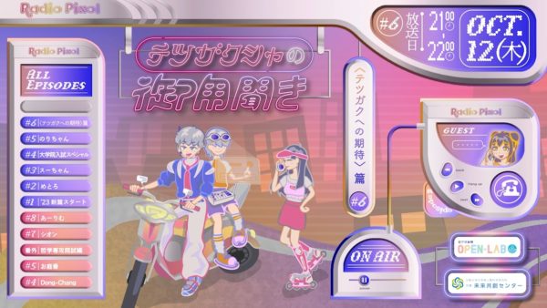 大学の中だけでなく、外でテツガクに関わっている方々に、「テツガクへの関わり方」や「テツガクへのおもい・期待」を聞き、語ってもらい、対話をすることで、「テツガク」することの楽しさを、わかりやすくリスナーに伝えています。